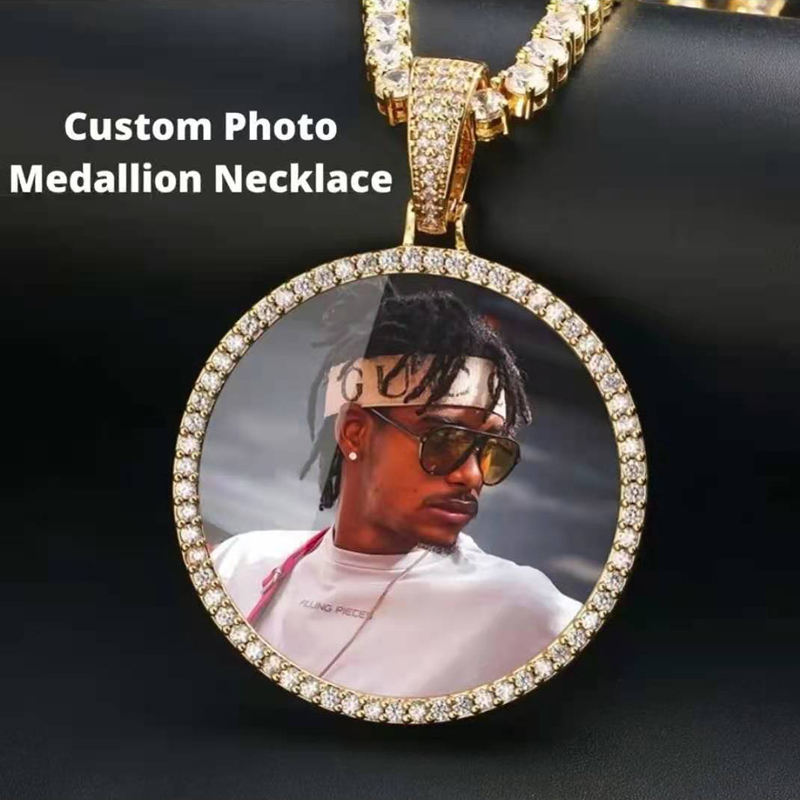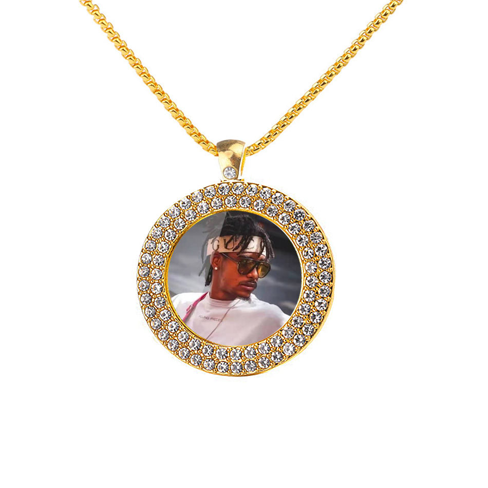 Color oro Zircone Cubico Personalizzata Foto Medaglione Immagine Collana Del Pendente Della Collana Con Catena Mais