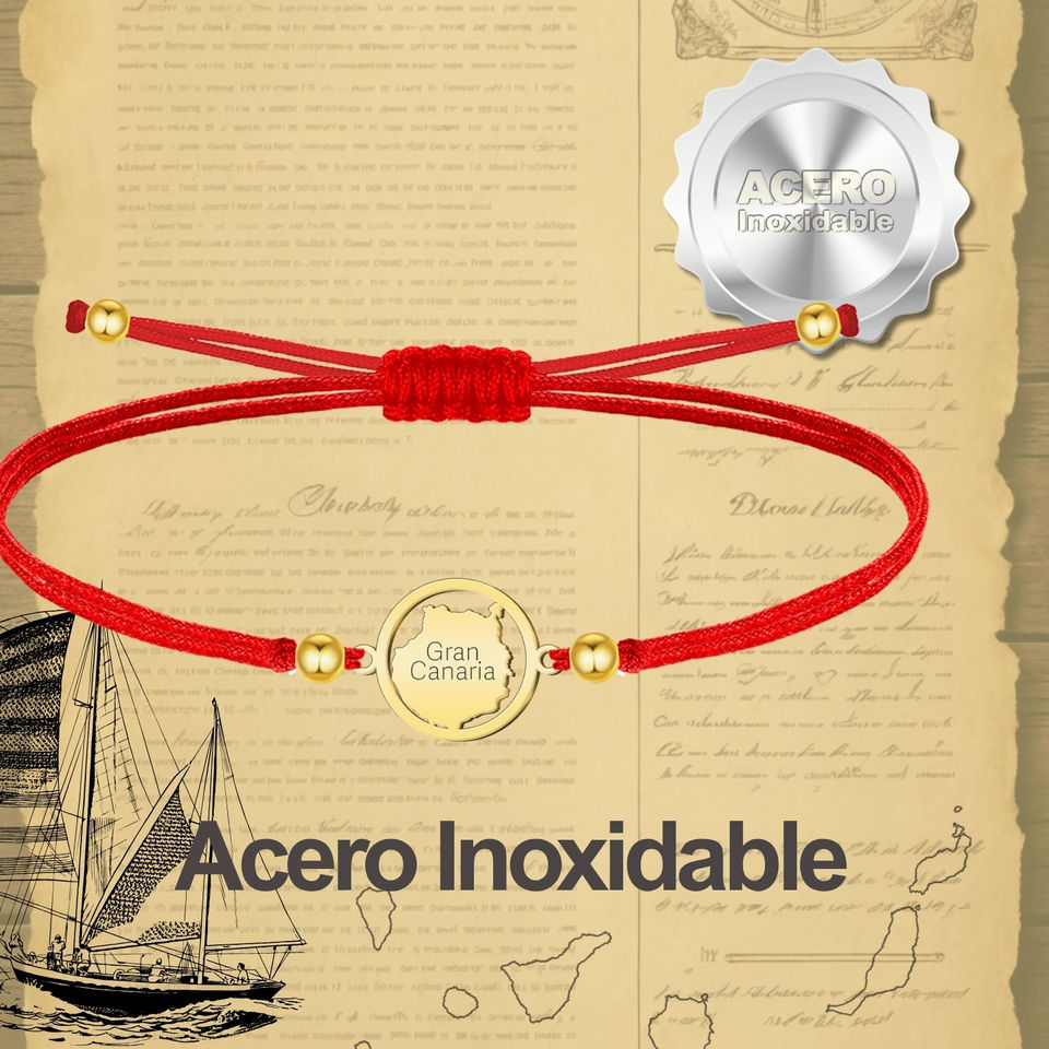 Bracciale in filo cerato in acciaio color oro con mappa di gioielli a catena e maglie di Gran Canaria