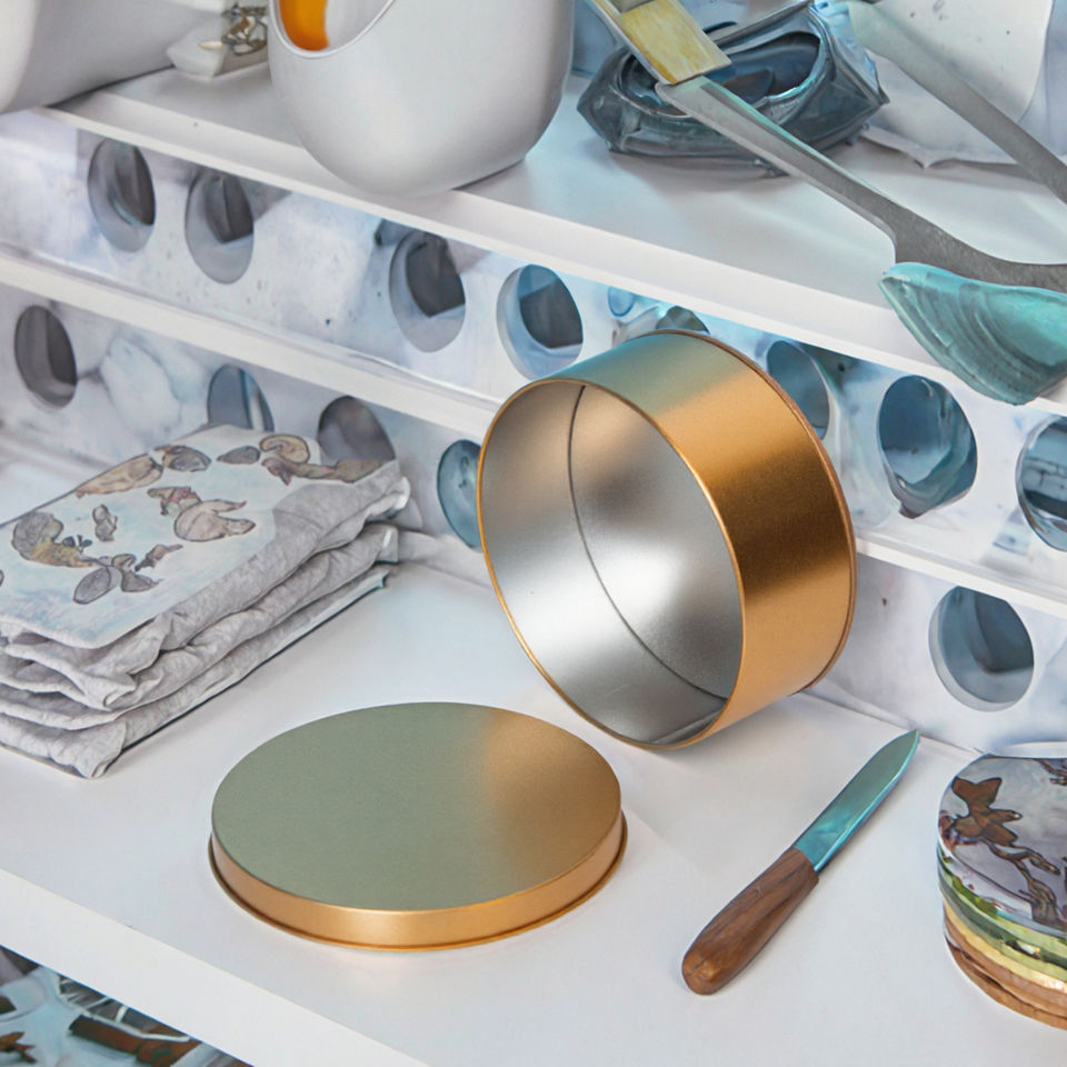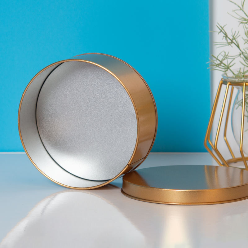 Contenitore Rotondo in Metallo Dorato per Biscotti con Logo Personalizzato Stampato