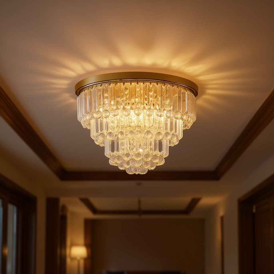 Lampadario in cristallo dorato, grande lampada da soffitto per sala da pranzo, soggiorno, camera da letto, lampadina LED E14 non inclusa