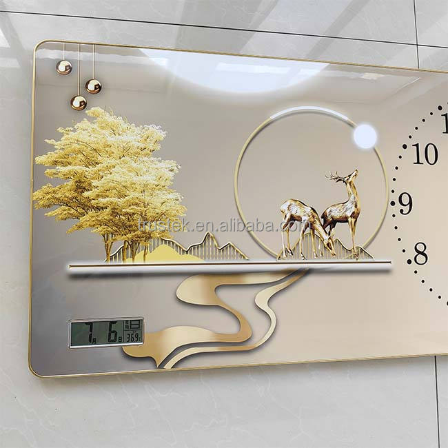Gold Deer Decorative Painting Art Wall Clock Crystal Porcelain Painting Mural