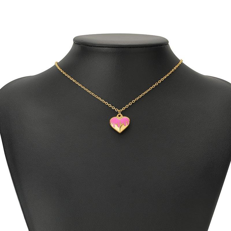 Gold Filled Stainless Steel Heart Pendant Classic Oil Driiping Pendant Charm for Jewelry Making Enamel Heart with Gold Plating