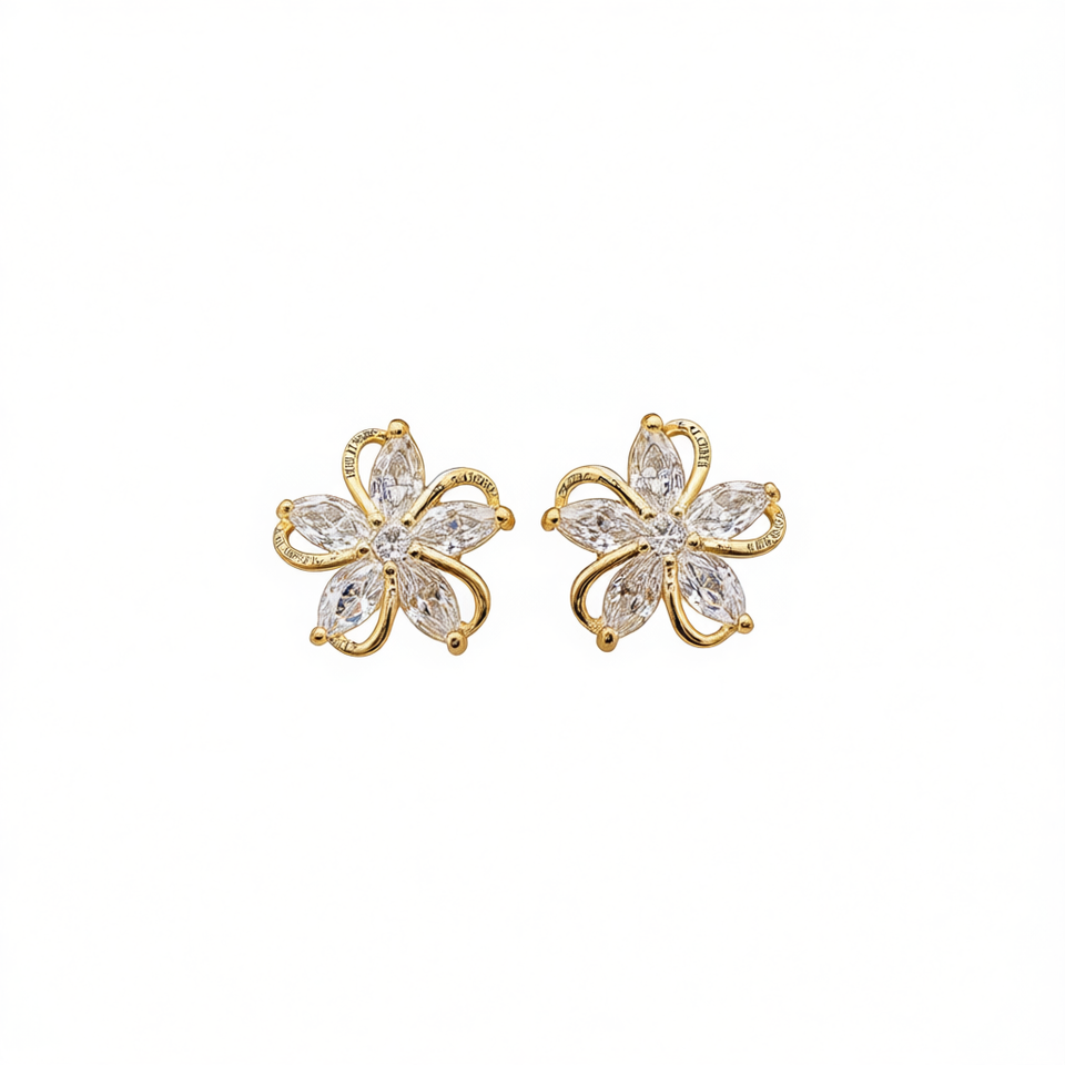 Gold Flower Stud Earrings Marquise Zircon Claw Setting 18K Gold Plated Women's Party Romantic Fashion Jewelry