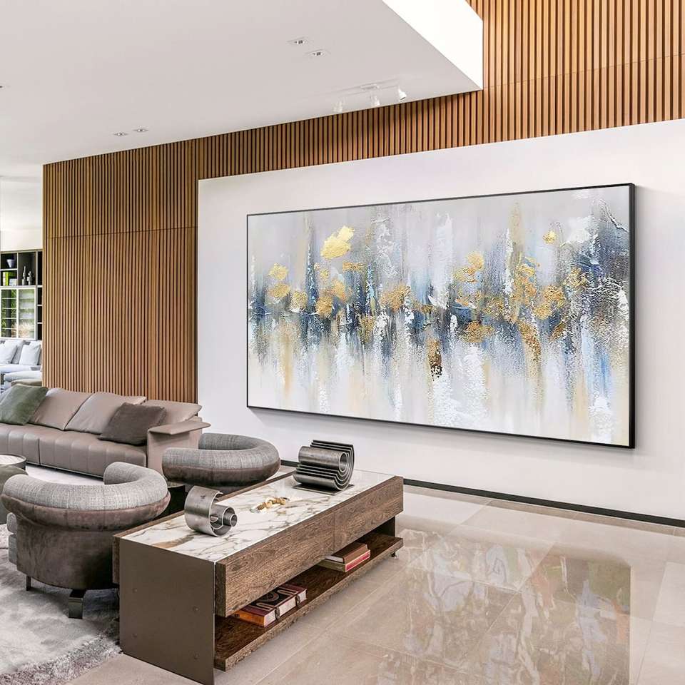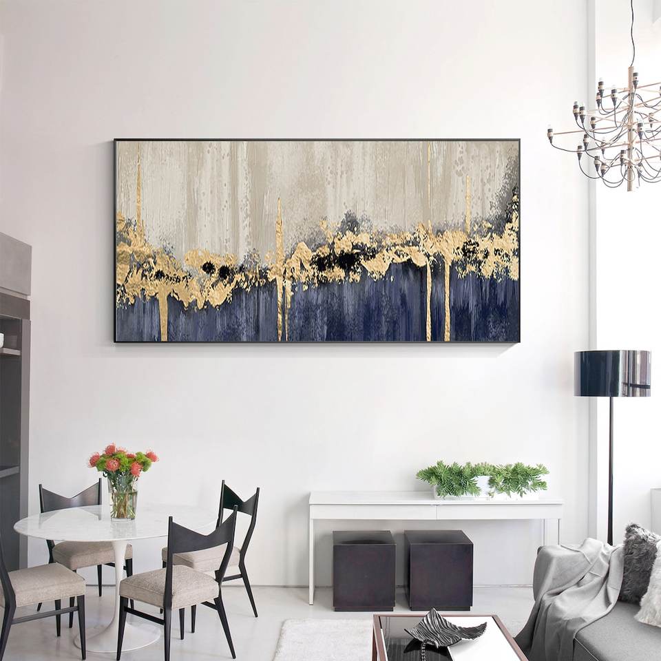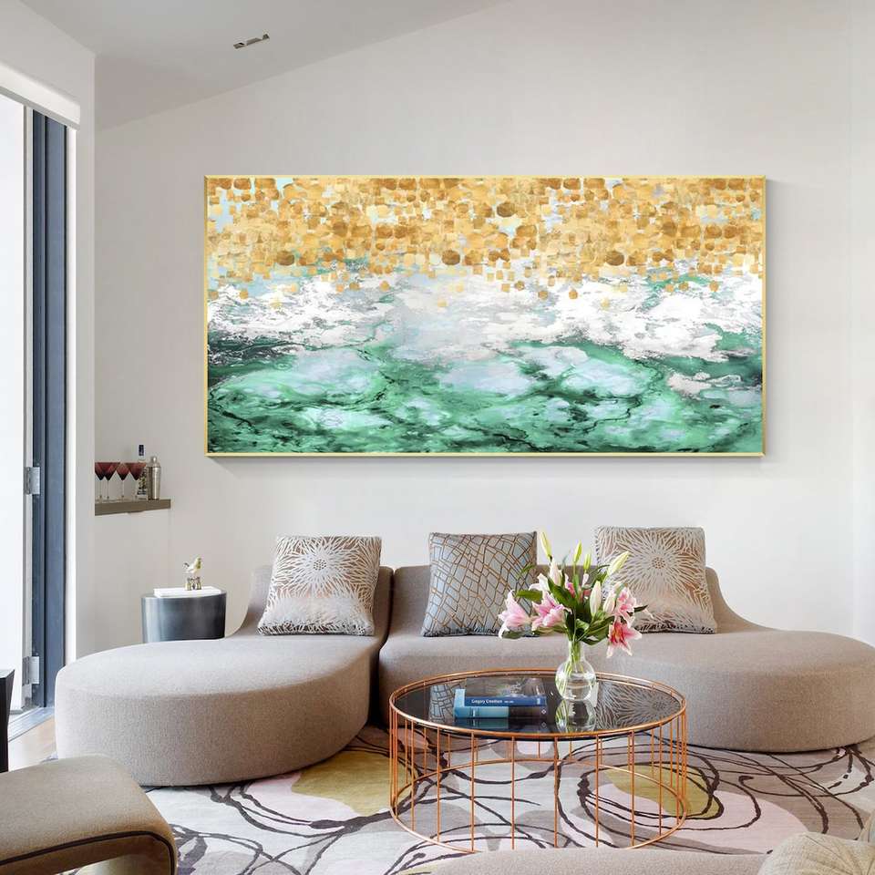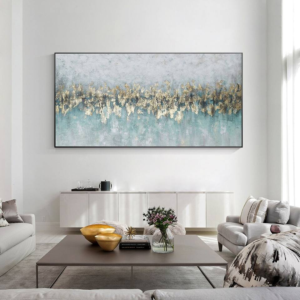Fola d'oro verde acqua 3D Texture pittura astratta su tela soggiorno camera da letto grande oro di lusso parete arte nuova decorazione per la casa
