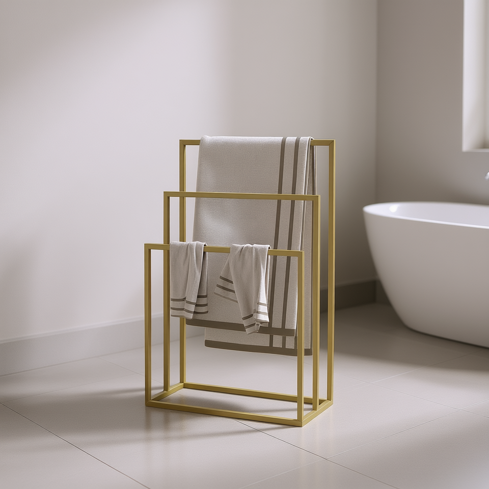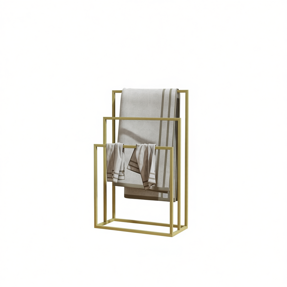 Portasciugamani in ferro dorato autoportante 96 cm 3 barre, design elegante per bagno di casa