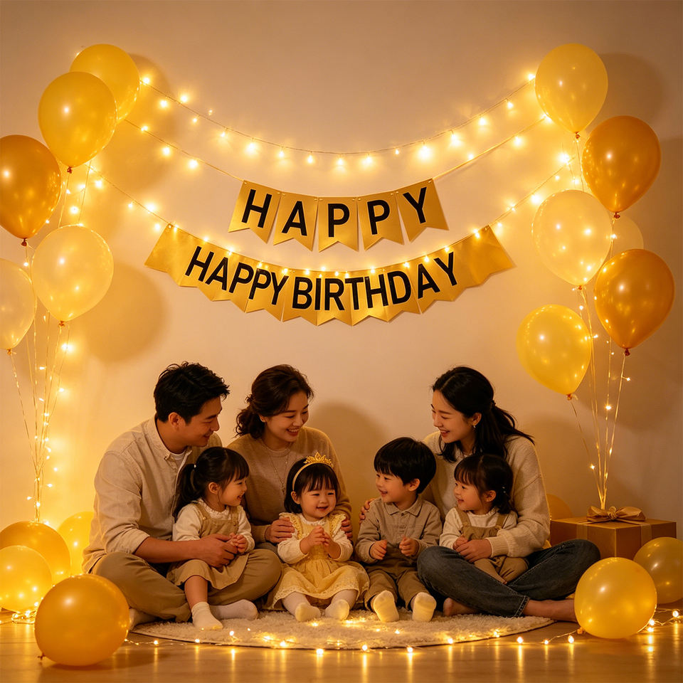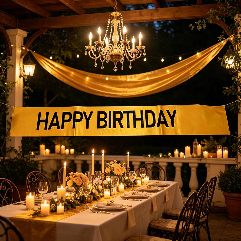 Fascia Dorata 'Buon Compleanno' con Lettere Nere, Elegante Decorazione per Feste, Confezione da 12 Pezzi