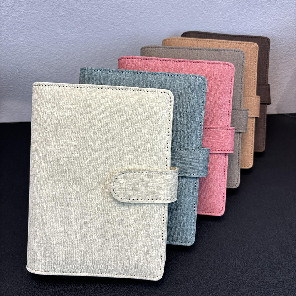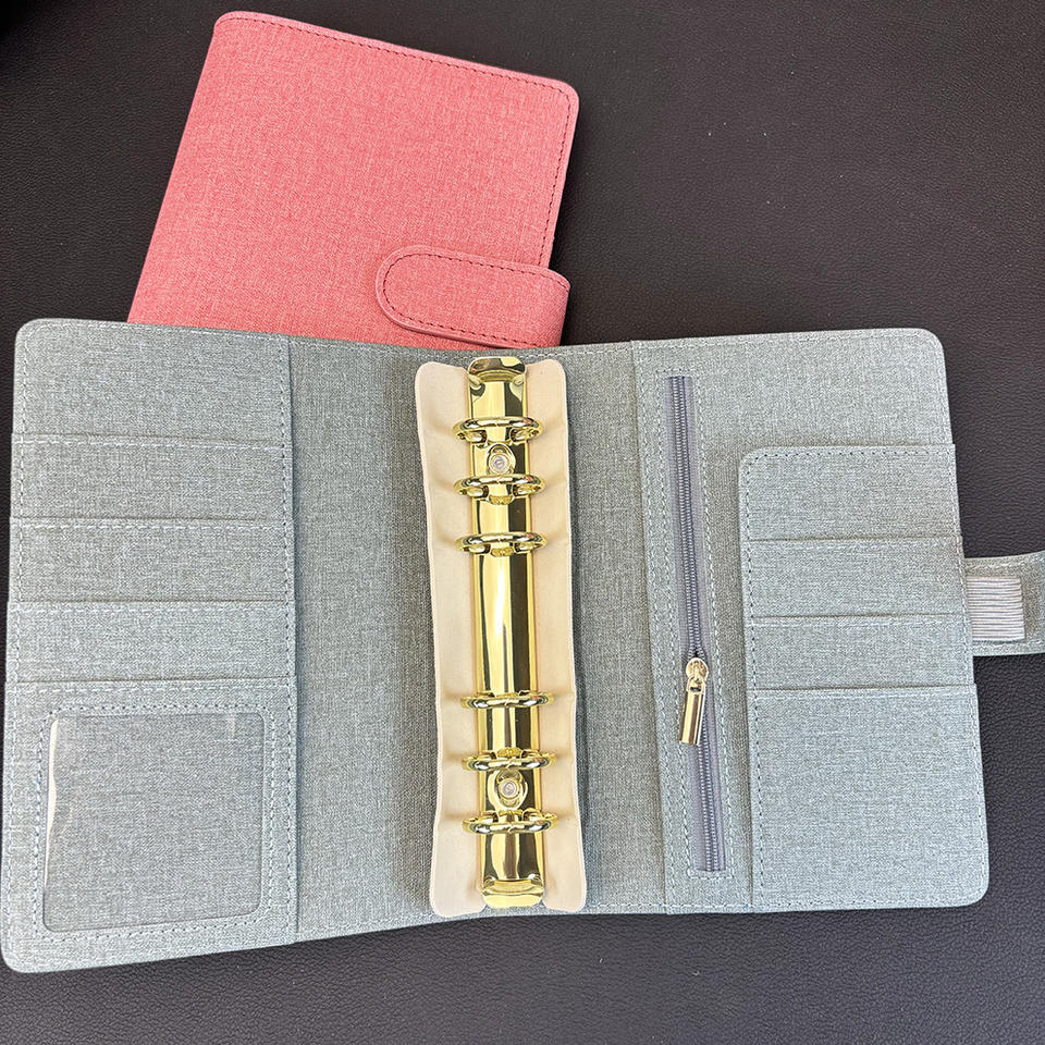Raccoglitore per buste contanti A6 con anelli da 30 mm e hardware dorato, con portafoglio con cerniera, agenda e organizer per la gestione del budget in lino