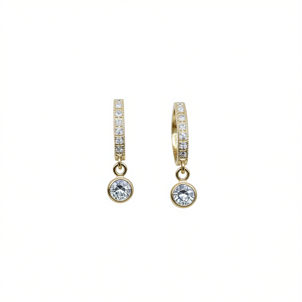 Orecchini a Cerchio in Oro con Cristalli Incastonati, Placcati in Oro 18K, Gioielli Classici da Donna per Uso Quotidiano