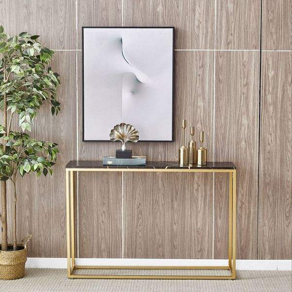 Consolle d'ingresso in MDF color oro, tavolo da divano in finto marmo per soggiorno e ingresso, elegante mobile per l'ingresso