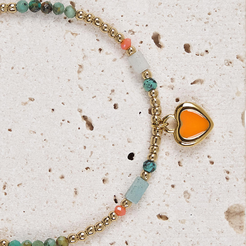 Bracciale in acciaio inossidabile con madreperla dorata e ciondolo a cuore, perline multicolori, gioielli in stile boho per donna