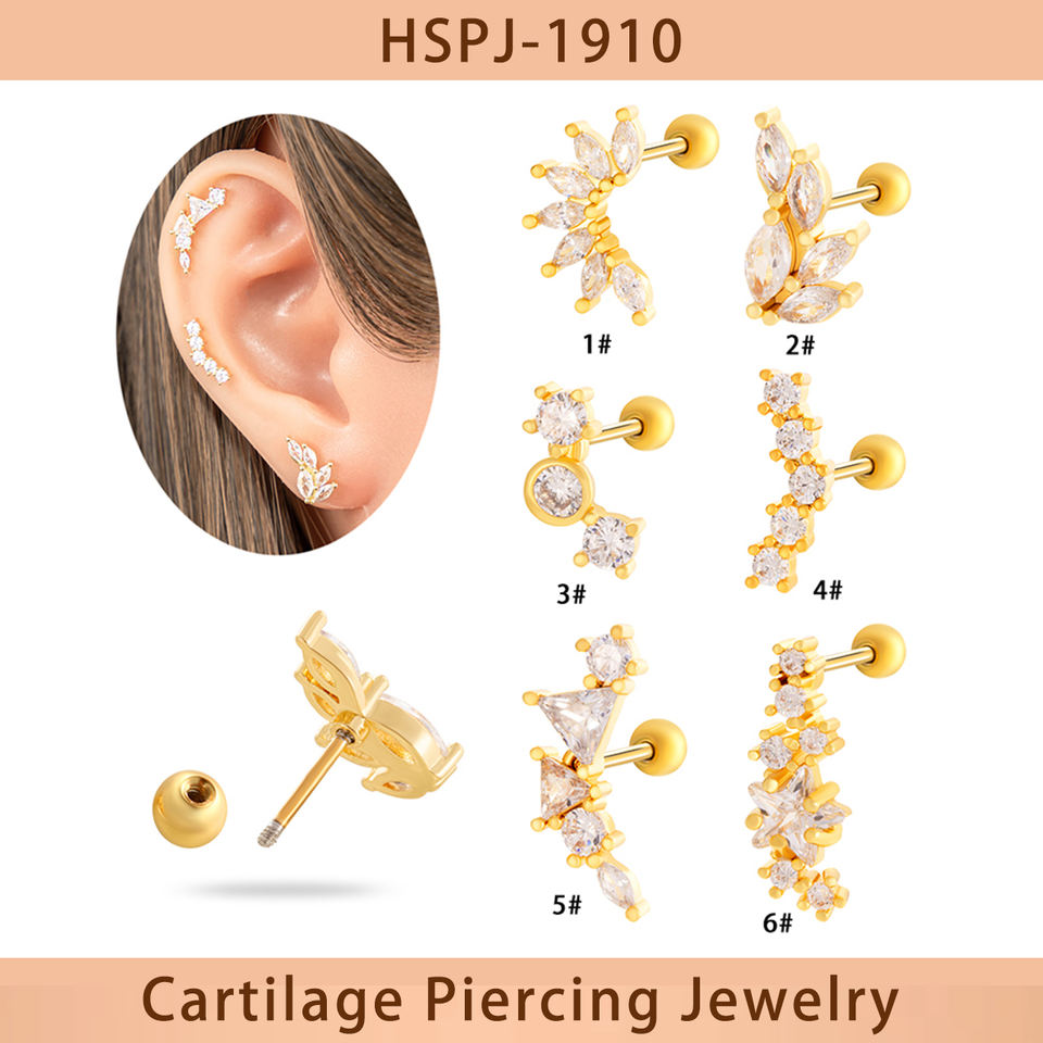 Gold Plated 20g Stainless Steel Piercing Jewelry Diamond Helix Tragus Cartilage Earring for Women