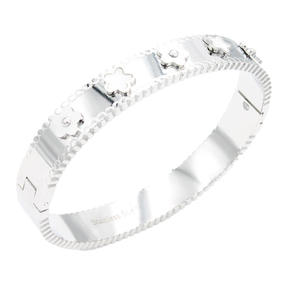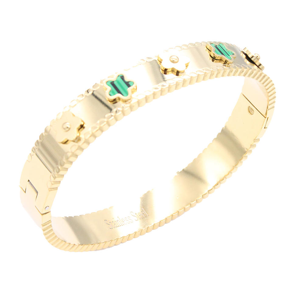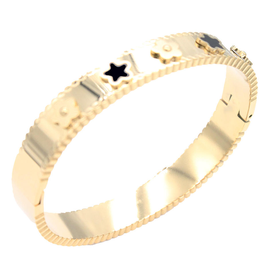 Gold Plated Black Clover Stainless Steel Fashion Bangle Bracelet