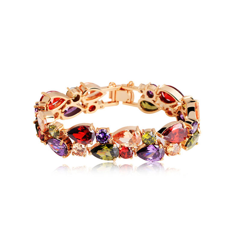 Gold Plated Bohemia Style Amethyst Chain Multi Color Zircon Lucky Stone Bracelets