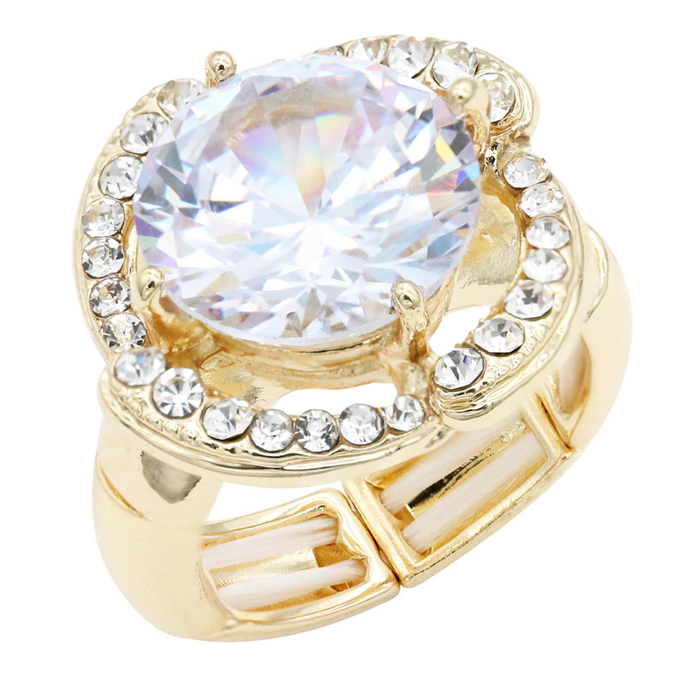 Gold Plated Clear Stone CZ Stretch Flower Rings Trendy Religious Style Oval Cut Inlay Geometric Shape for Children Christians