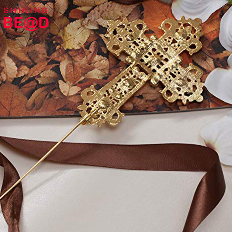 Placcato oro Croce di Cristallo Del Rhinestone Decorazione Della Torta Topper per la Cerimonia Nuziale Religiosi Battesimo Battesimo
