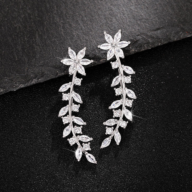 Orecchini a polsino placcati oro a forma di fiore con strass taglio marquise per donna, gioielli in lega stile romantico da matrimonio