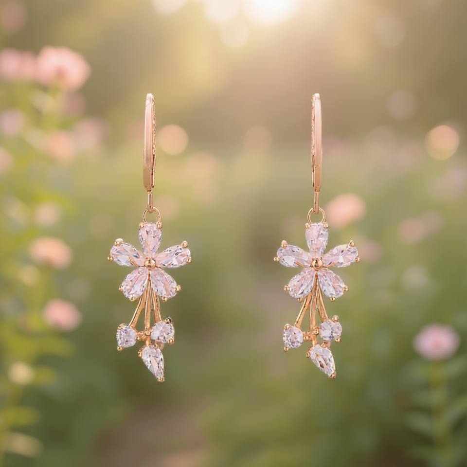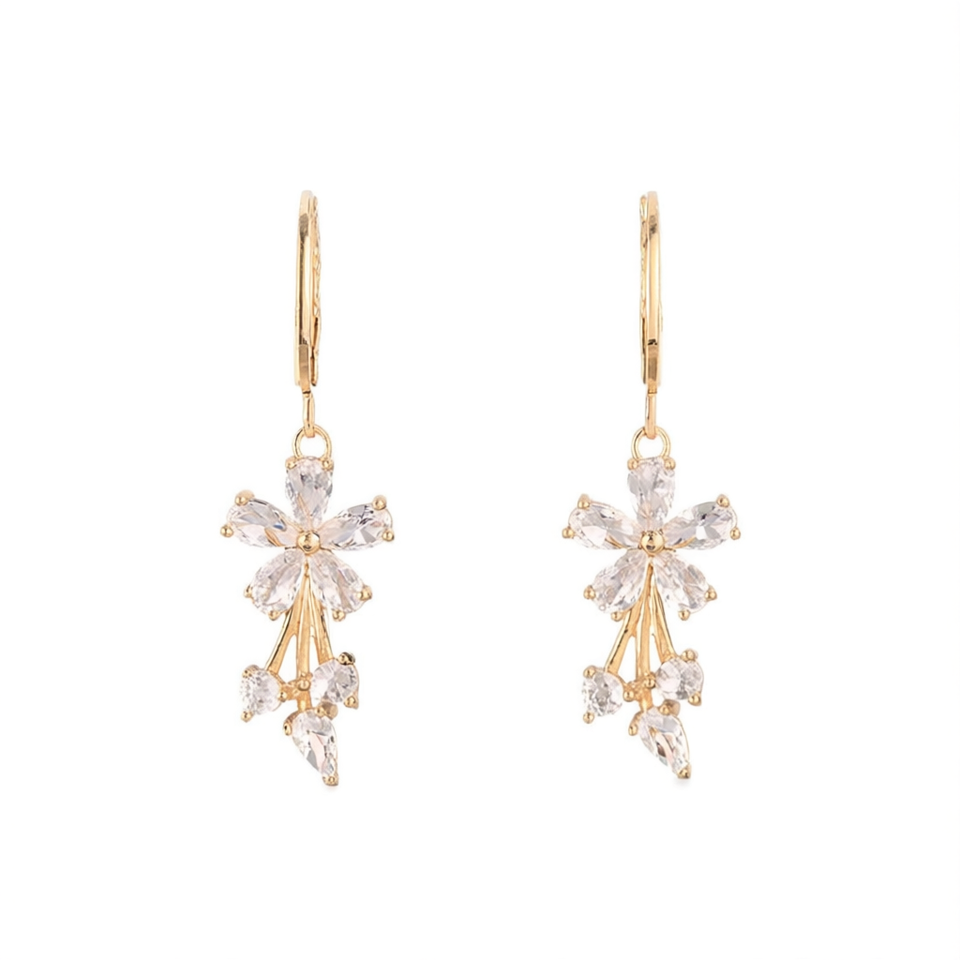 Gold Plated Flower Drop Earrings With Pear Cut Crystal Rhinestones For Women Party Romantic Style E465