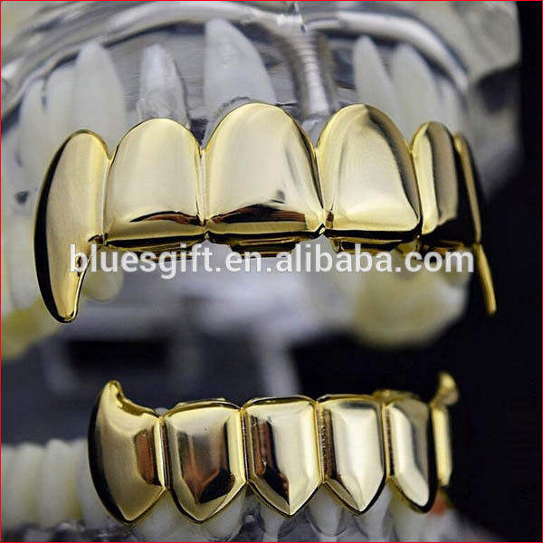 Denti da Vampiro Placcati in Oro per Costumi di Carnevale, per Età 14+
