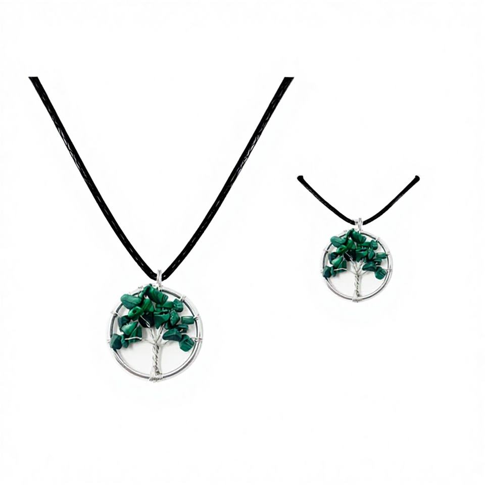 Ciondolo Cotigo Placcato Oro con Pietra di Malachite, Albero della Vita, Stile Religioso, Gioiello in Lega di Zinco con Charm in Pietra Naturale di Onice