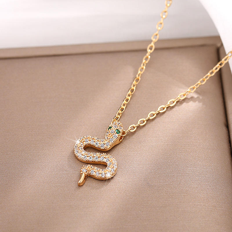 Collana con Ciondolo a Serpente Placcato Oro con Cristalli e Strass per Donne, Lussuosa per Uso Quotidiano, CATENA A SERPENTE