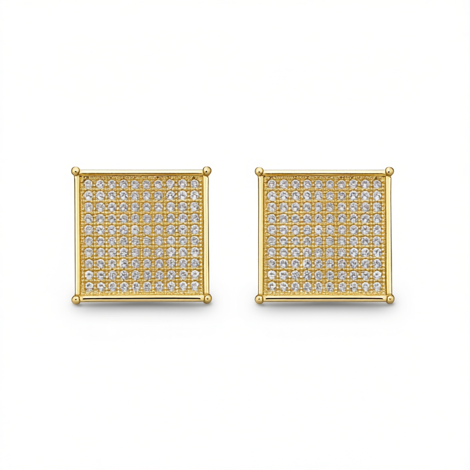 Gold Plated Square Stud Earrings With Round Zircon Micro Pave For Women Party Fashion Jewelry Trendy Geometric Design