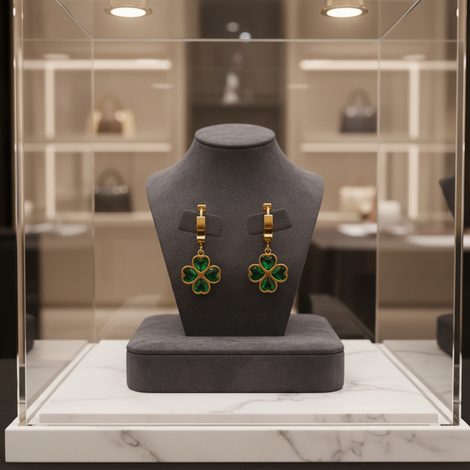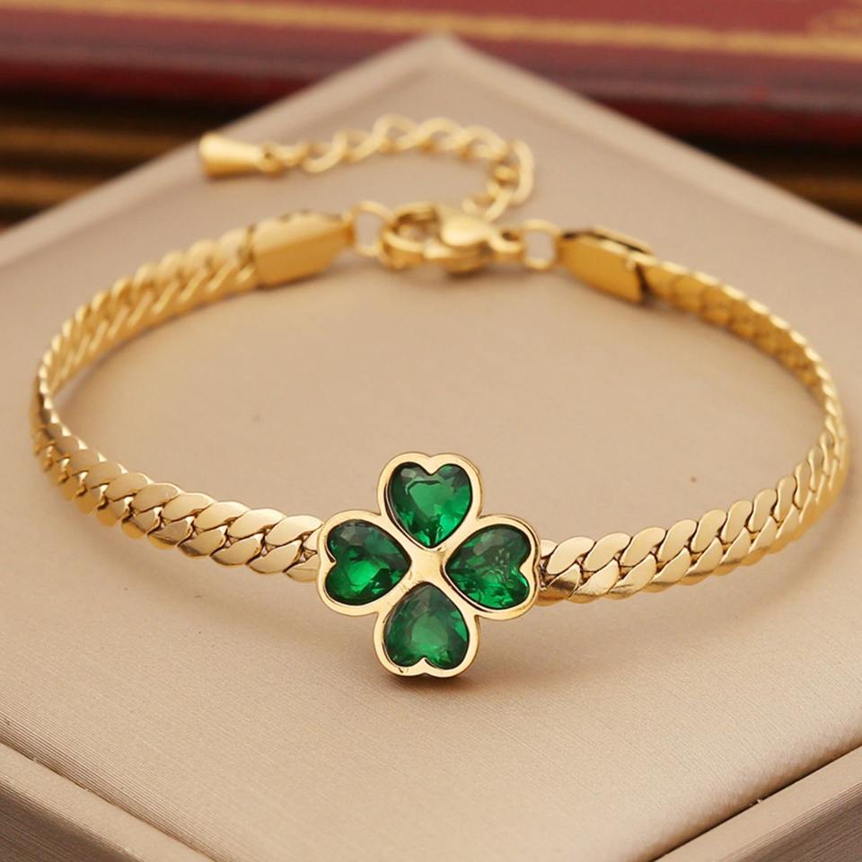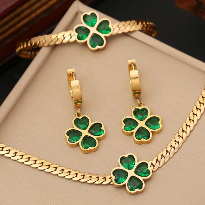 Set di Gioielli in Acciaio Inossidabile Placcato Oro con Collana a Quadrifoglio e Orecchini con Zirconi
