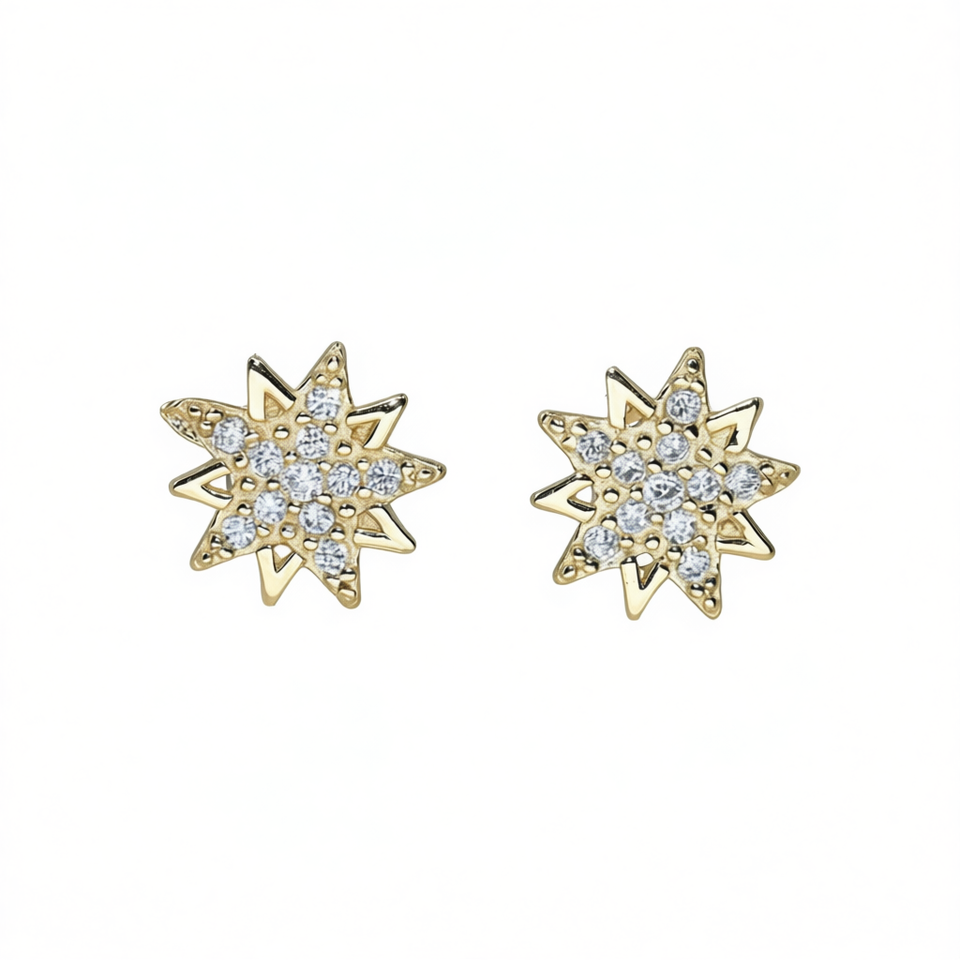 Orecchini a stella placcati oro con zirconi rotondi incastonati a griffe per donna, gioielli alla moda per feste