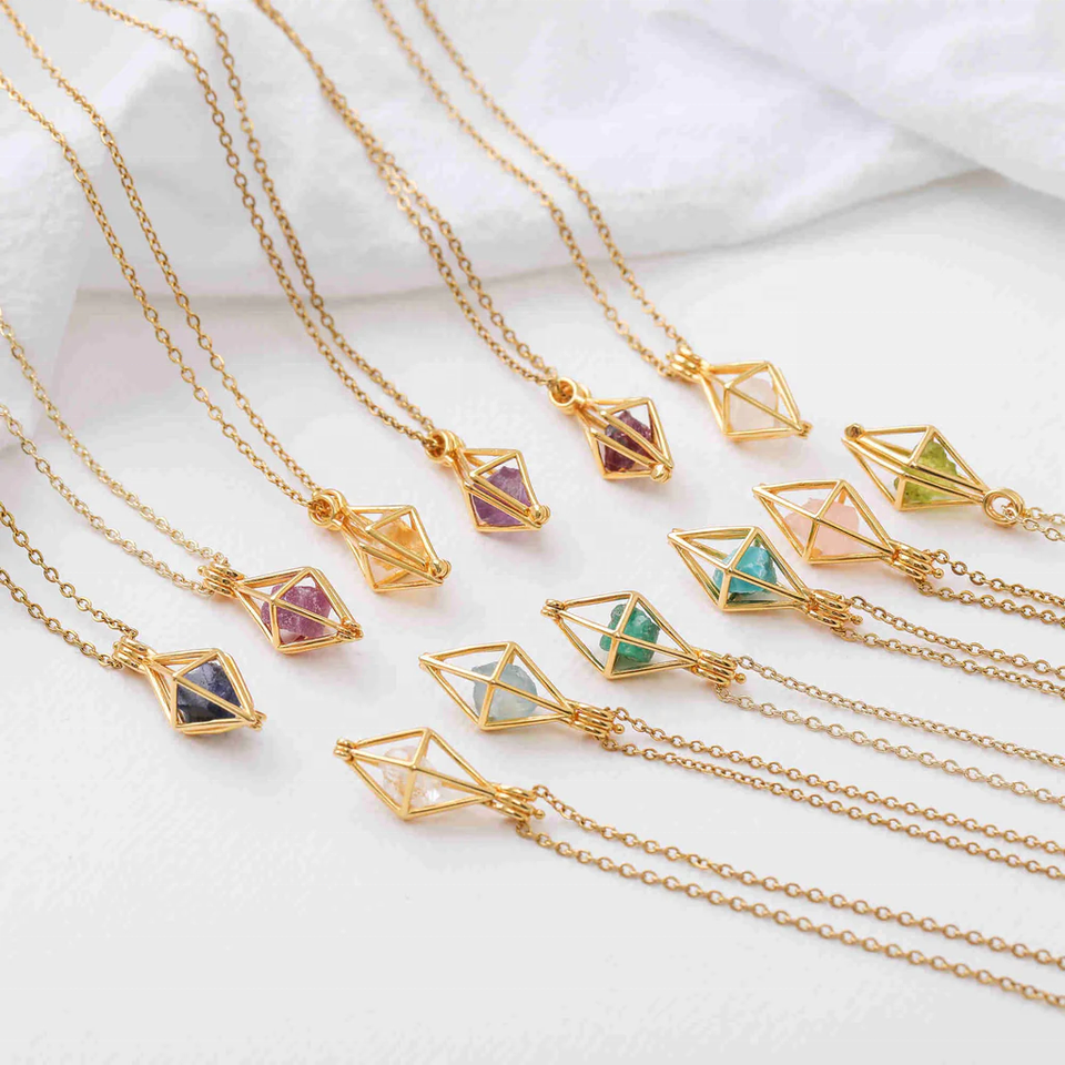 Collane con medaglione in argento sterling 925 placcato oro collana con supporto in pietra di cristallo di guarigione grezza birthstone