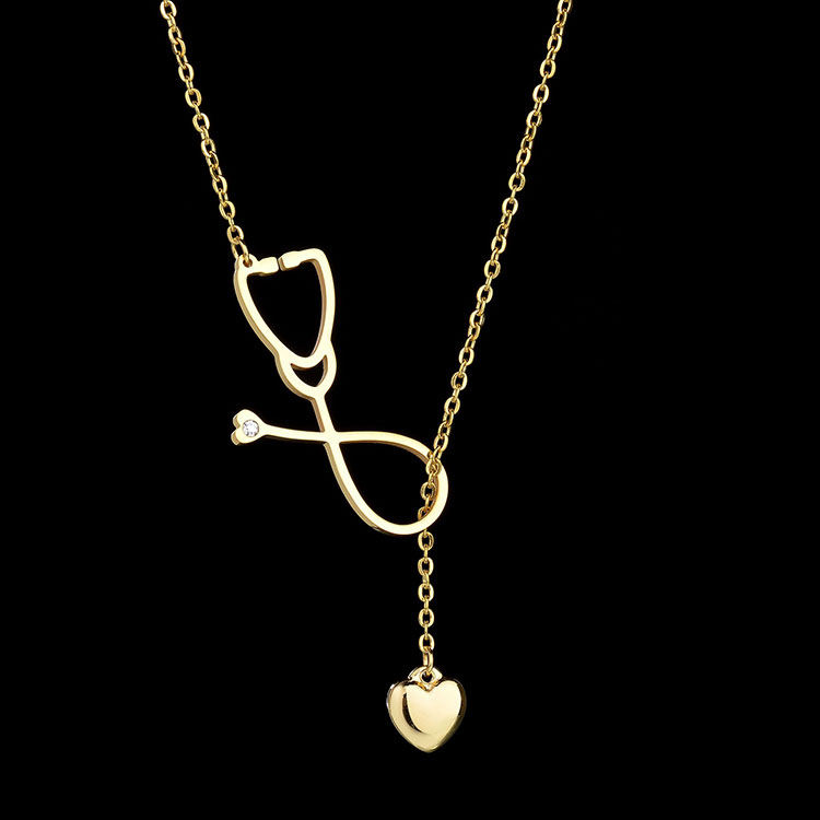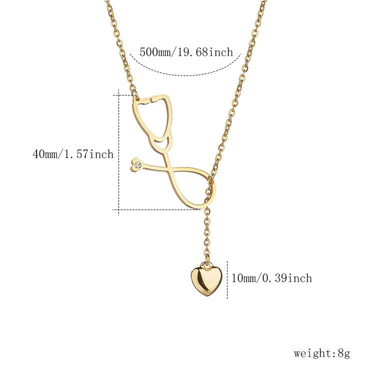 Placcato oro titanio acciaio medicale ciondolo strass stetoscopio collana per medici infermieri maglia catena accessorio da sposa