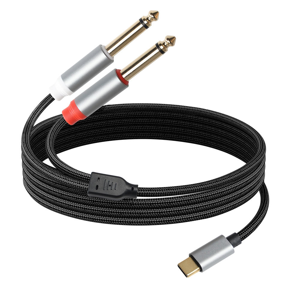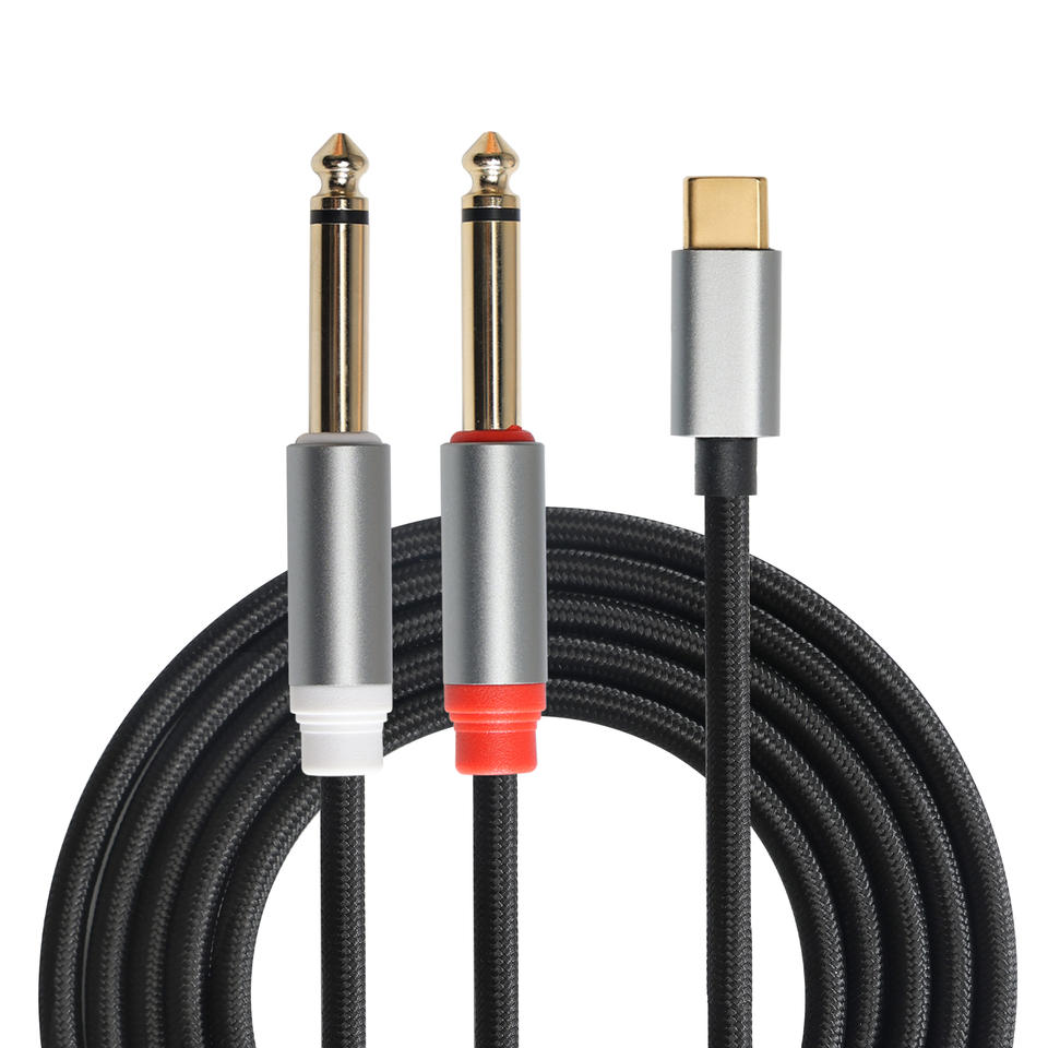 Placcato oro tipo C USB C a AUX Dual 6.35mm connettore 1/4 maschio Y ramo Splitter Stereo cavo Audio per telefono portatile Amp
