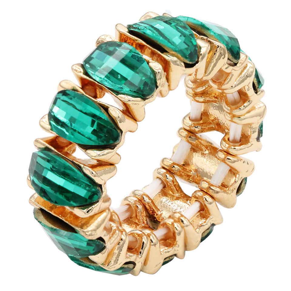 Gold-Plated Vintage Brass Rings with Green Crystal Natural Gemstones Inlay Oval Cut Diamond Geometric Vintage Ring Number Shape