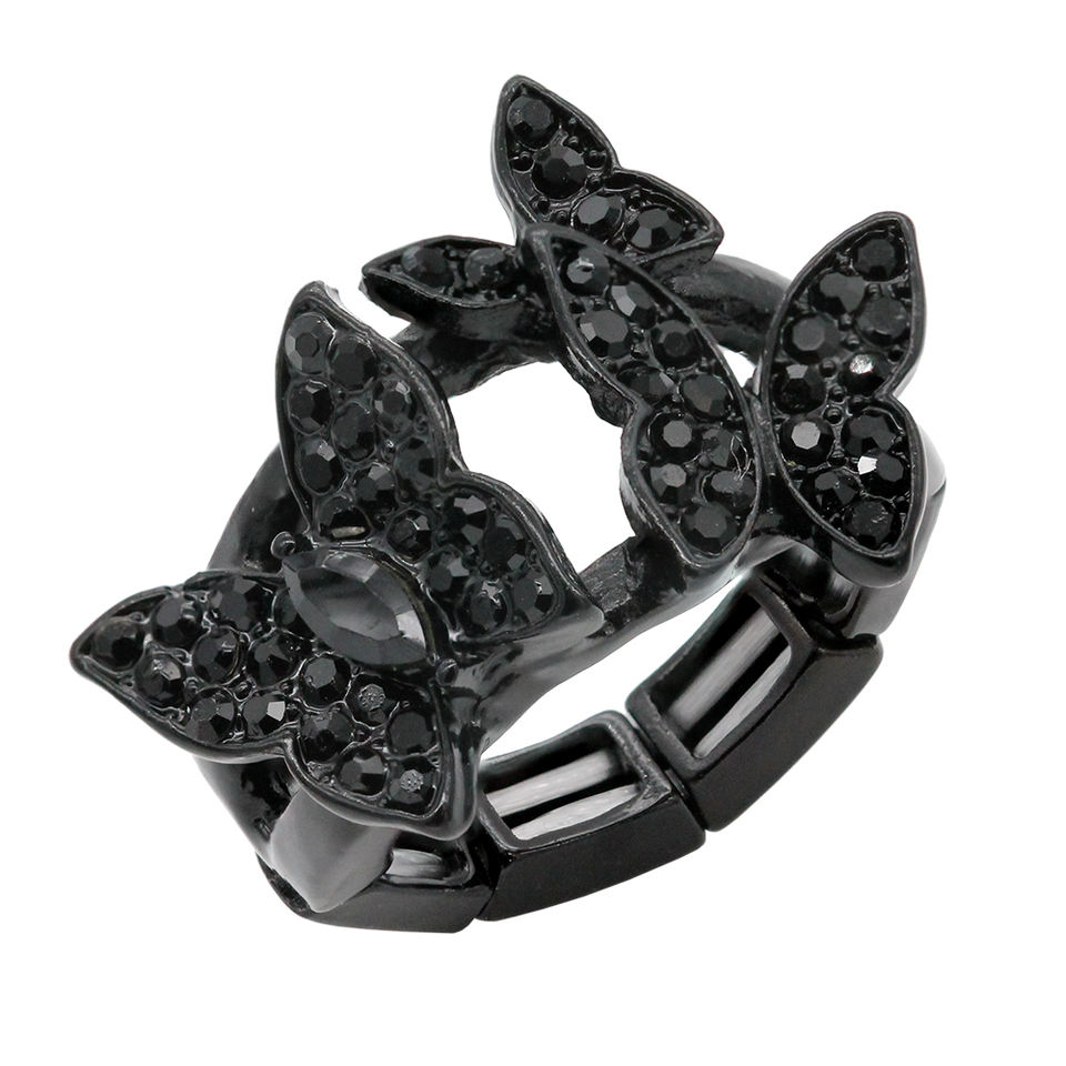 Gold Plated With Clear Crystal Butterfly Stretch Rings