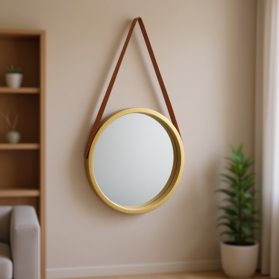 Specchio da parete rotondo dorato con cornice in metallo, design moderno per l'arredamento della casa