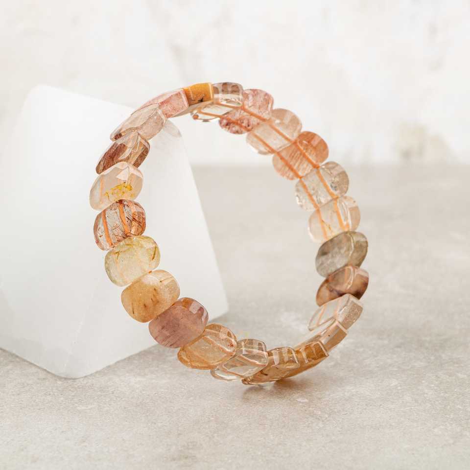 Bracciale in Quarzo Rutilato Dorato con Taglio Largo in Pietra Naturale