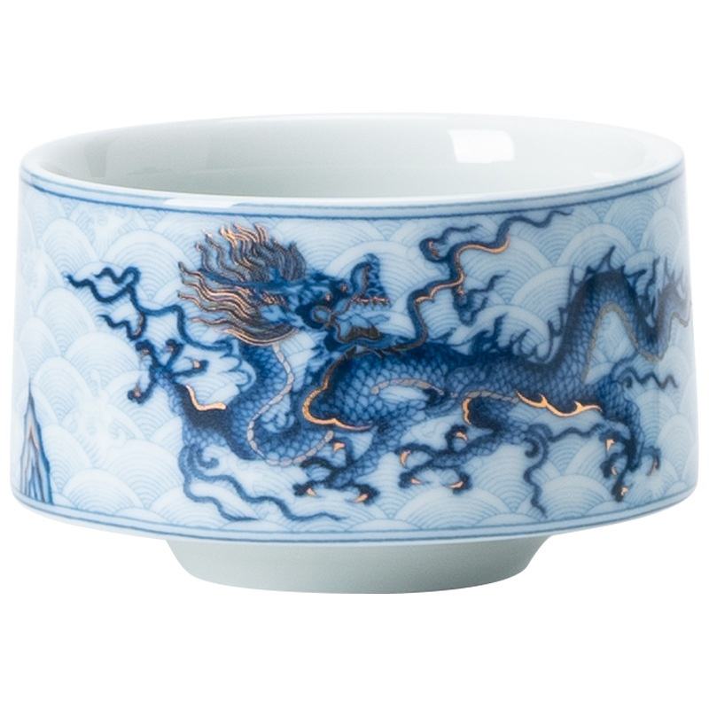 Tazza da Tè in Ceramica di Lusso con Motivo Drago Blu e Bianco Intarsiato in Oro e Argento, Stile Cinese Retrò di Alta Gamma