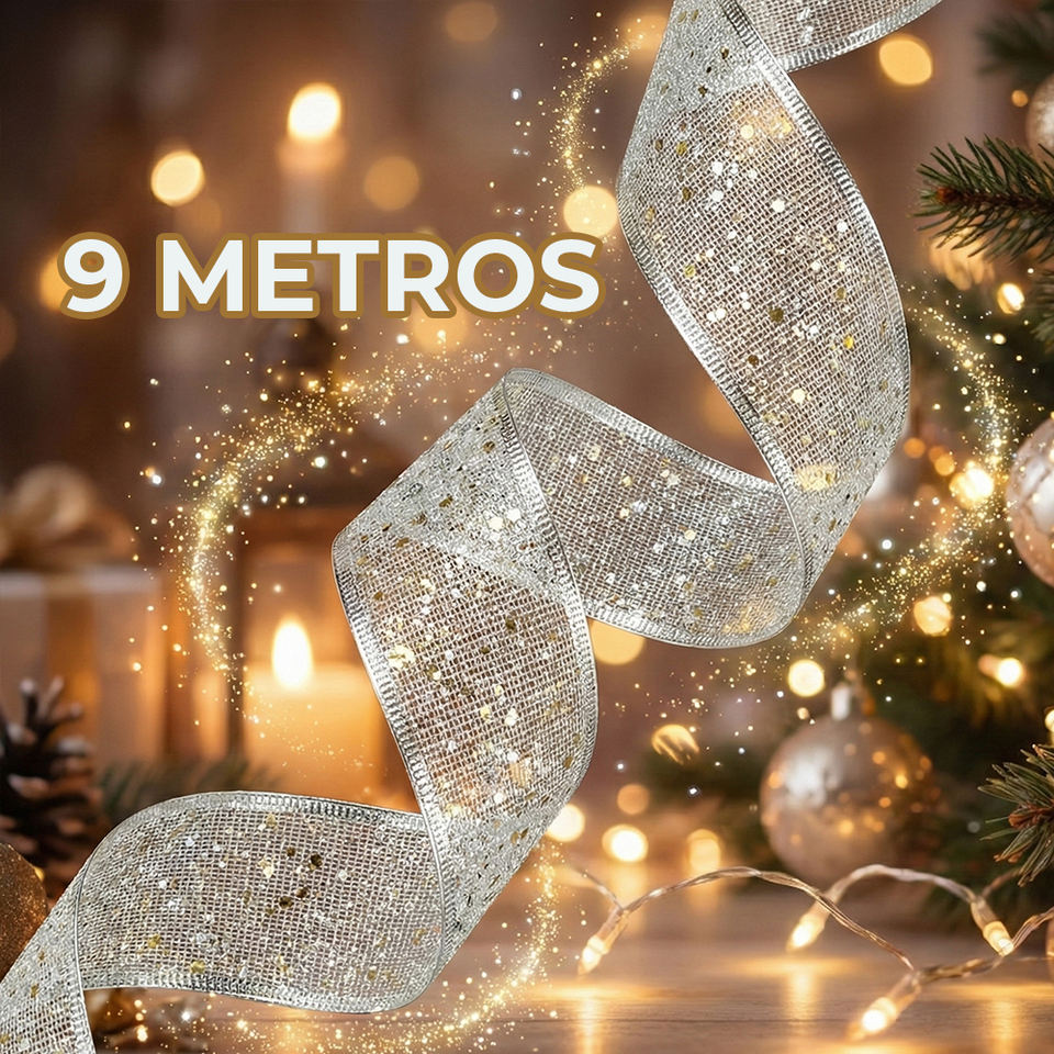 Nastri Natalizi in Tessuto Scintillante Oro, Argento e Rosso - Confezione Assortita
