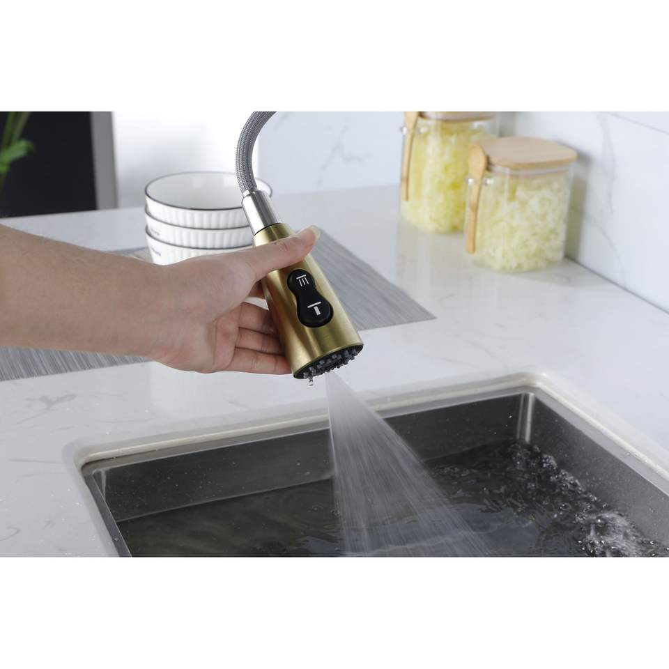 Rubinetto da cucina monocomando dorato con doccetta estraibile, resistente alle impronte digitali, per lavello da cucina