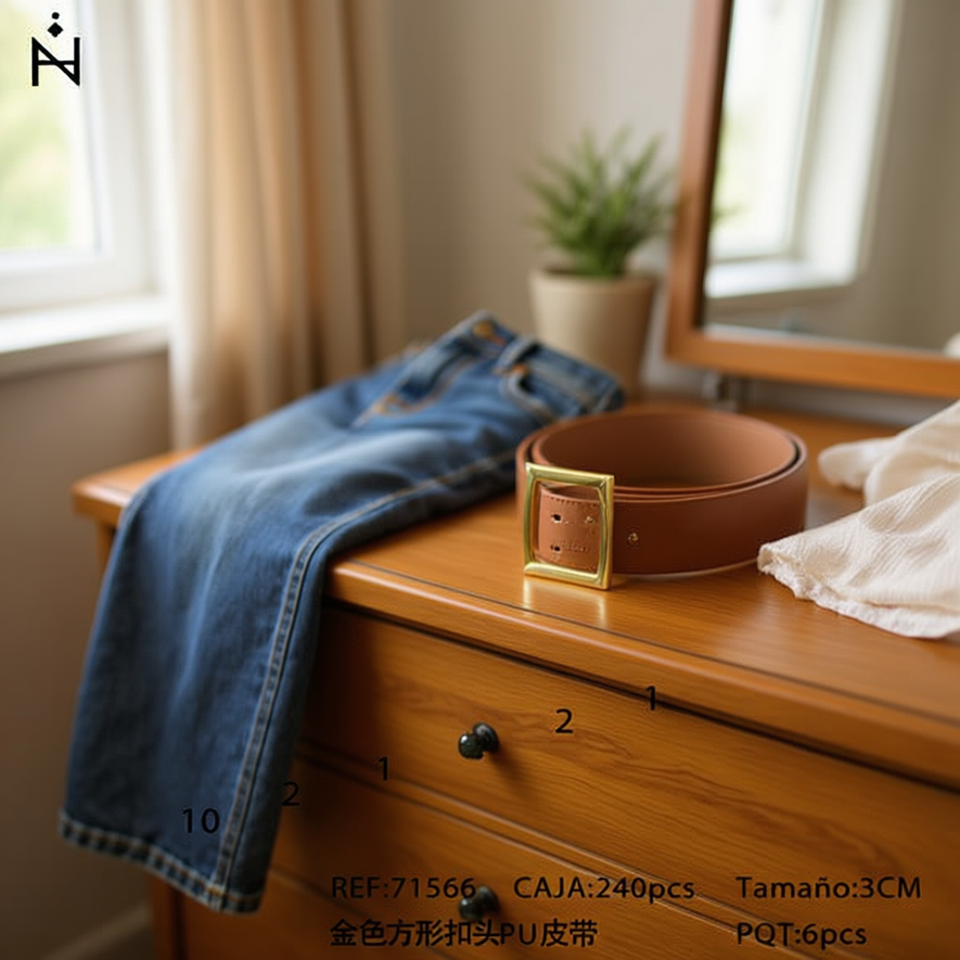 Cintura in Pelle PU con Fibbia Quadrata Dorata 3Cm, Cinture Moda Donna