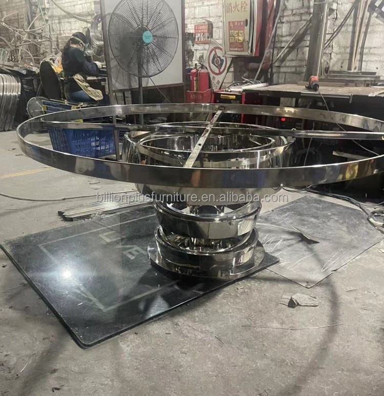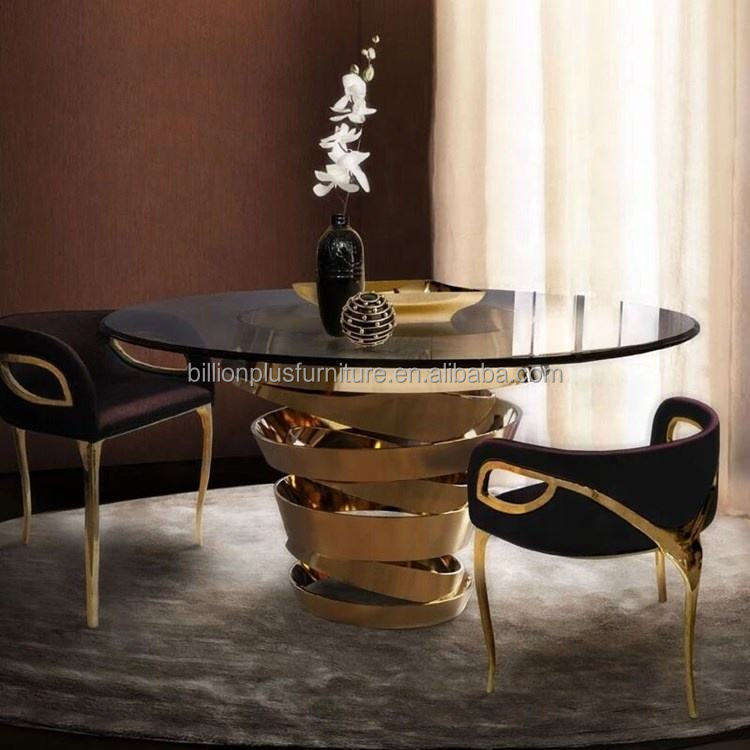 Tavolo da pranzo per feste di matrimonio con base in acciaio inossidabile dorato usato tavolo da pranzo rotondo in marmo dorato