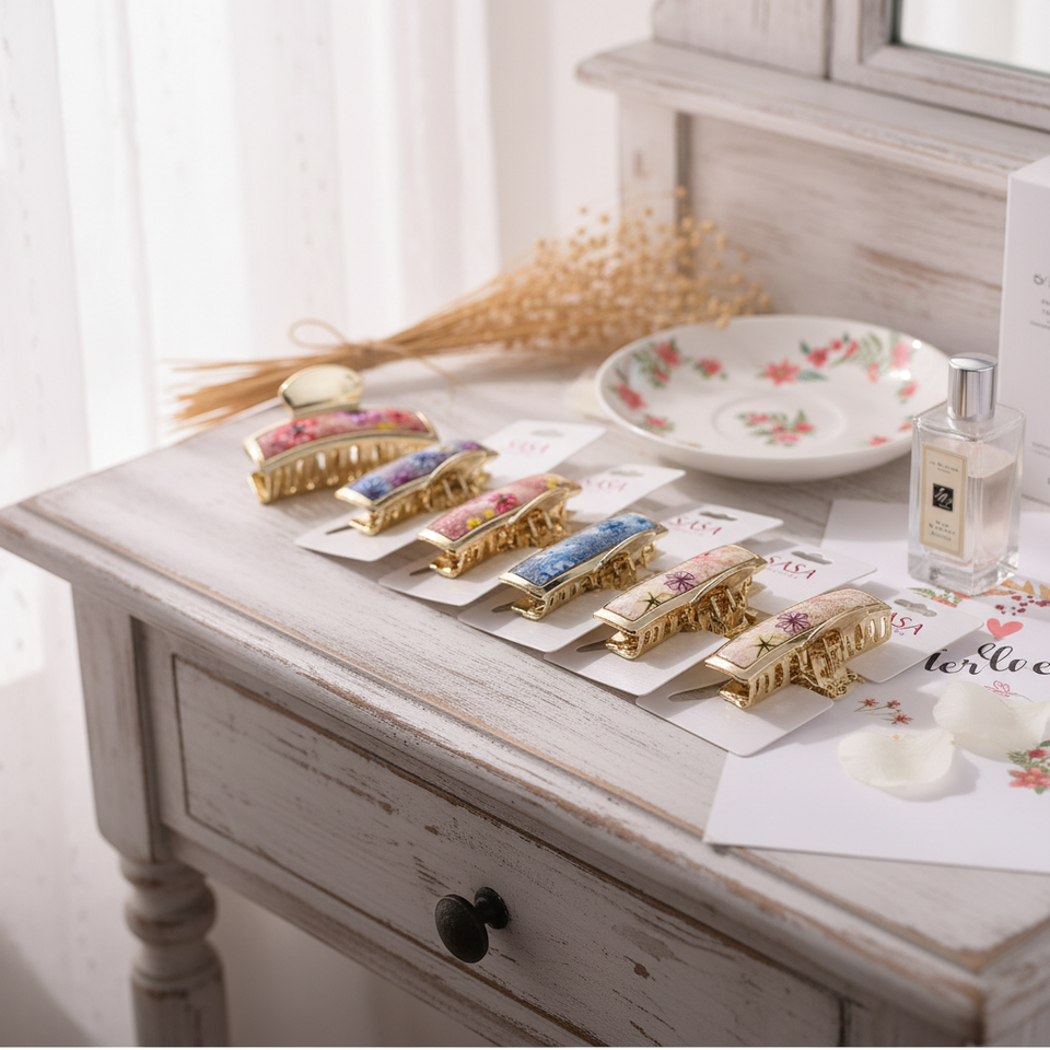 Fermagli per capelli cuciti in oro con fondo in oro disponibile in 6 colori