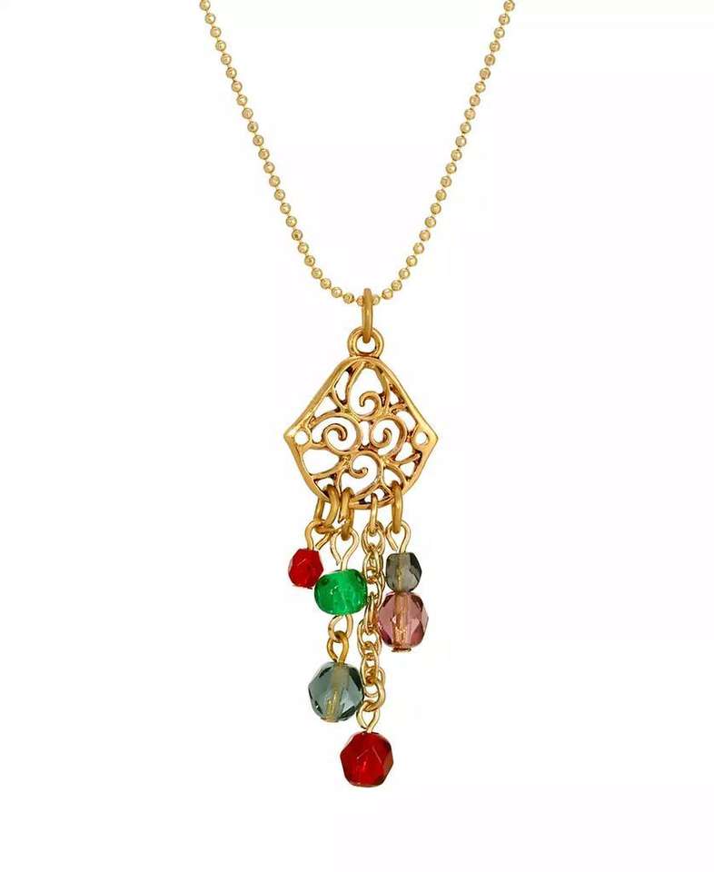 Collana con Perline in Vetro Colorato Dorato | 2028