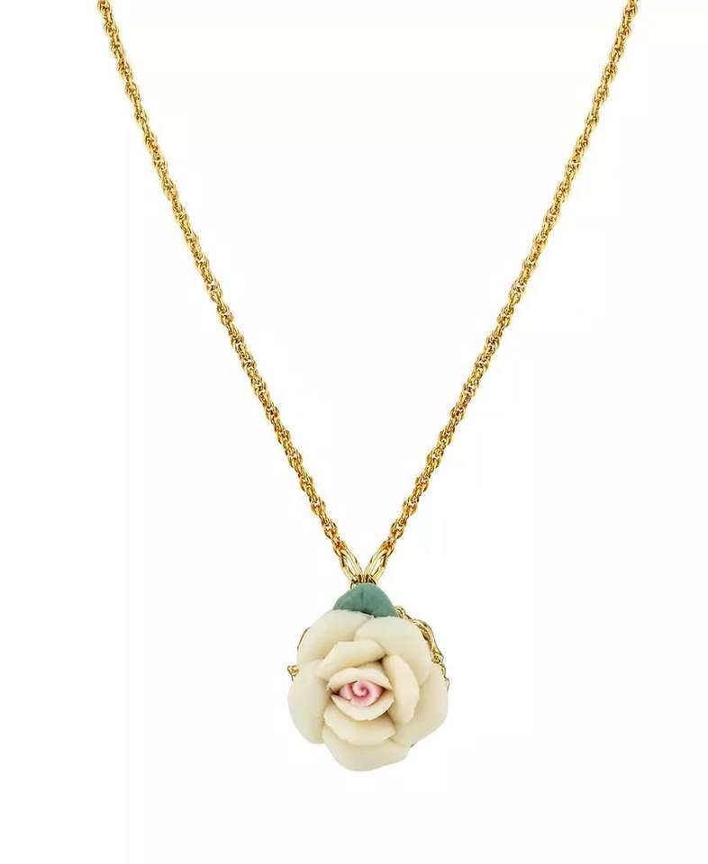 Gold Tone Porcelain pendant Necklace 16" Adjustable | 2028