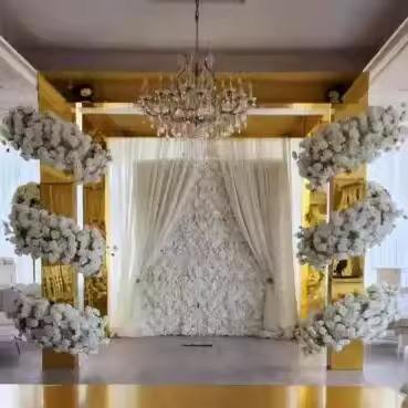 Gold Wedding Arch Background Frame Stainless Steel Stage Backdrop with Artificial Flowers for Wedding Staging
