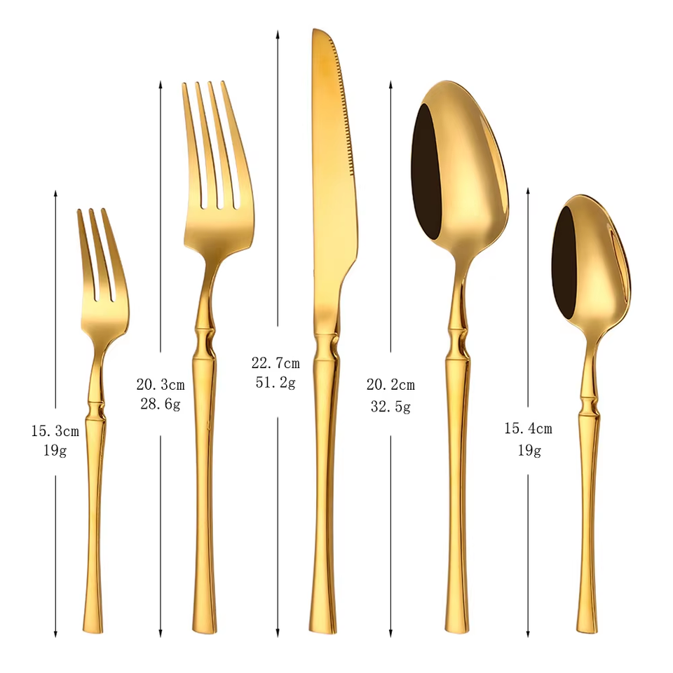 Gold Wedding Silverware Thin Design Cutlery Set Elegant Spoon and Fork Set Flatware Set 18-0 Steel Restaurant Cutlery for Event