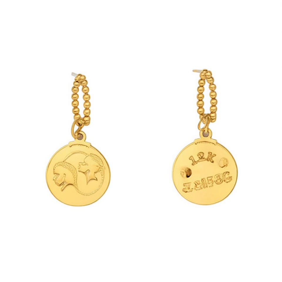 Orecchini Pendenti con Segni Zodiacali Placcati in Oro 12K, Gioielli di Moda con Ciondolo Rotondo in Acciaio