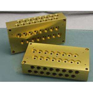 Parti fresate per cavità. - Lavorazione dell'alluminio, anodizzazione dorata.