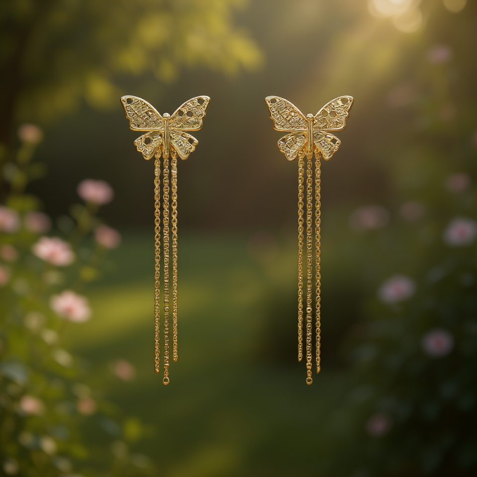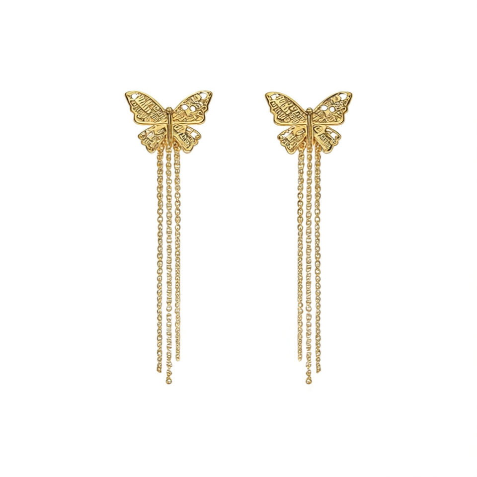 Golden Butterfly Chandelier Earrings For Women Alloy Metal Long Tassel Party Fashion Jewelry