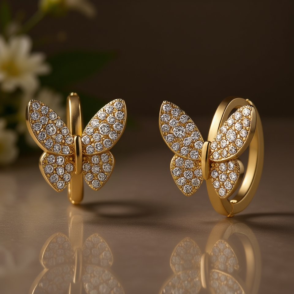 Golden Butterfly Stud Earrings With Crystal Rhinestones For Women Party Fashion Jewelry Gold Plated Alloy Earrings