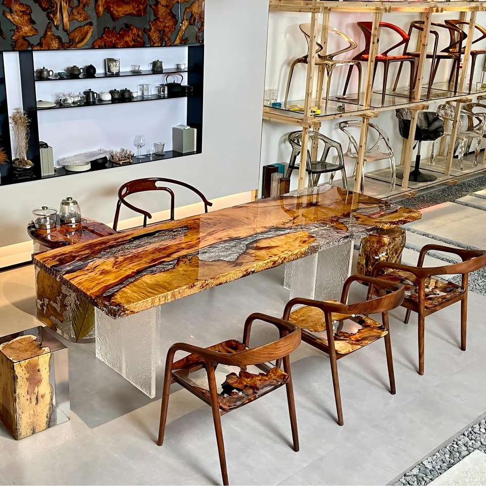 Golden Camphor Wood Tea Table Solid Wood Handcrafted Luxury tea table with running water Furniture with Natural Wood Grain