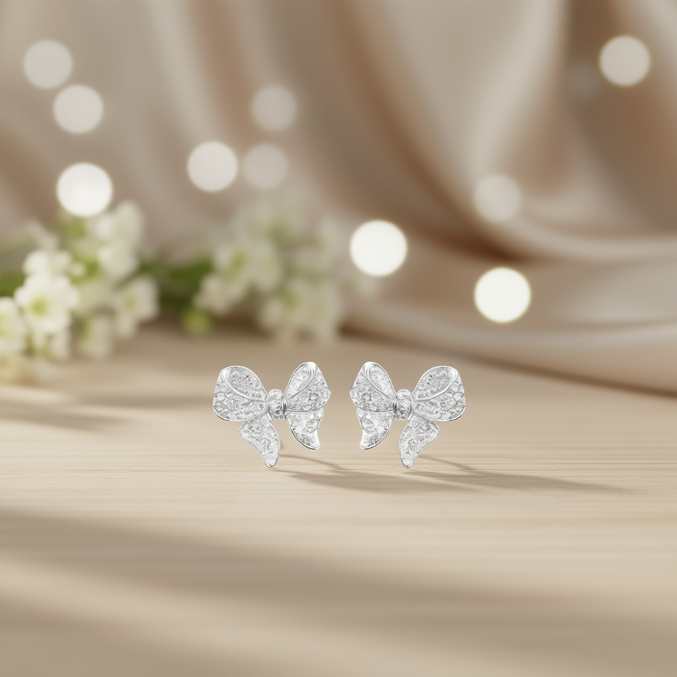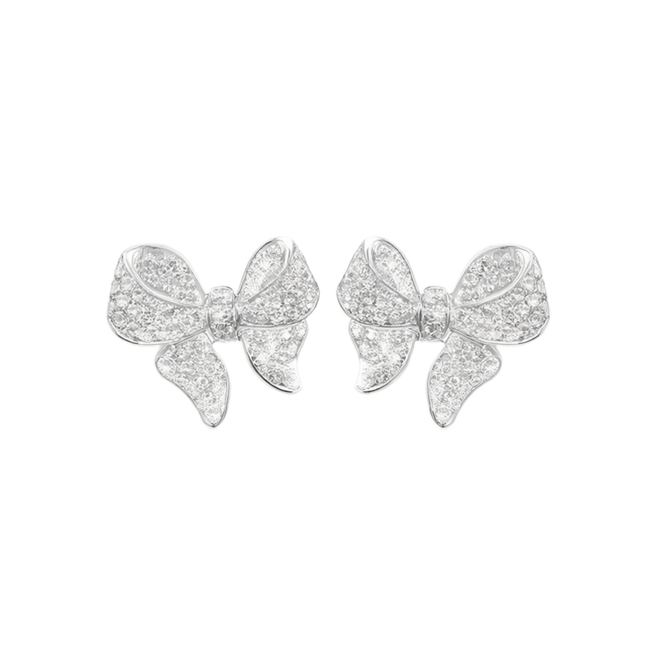 Orecchini a perno con fiocco color oro per donna, con micro inserti di strass in cristallo, gioielli alla moda e graziosi per feste, in lega.